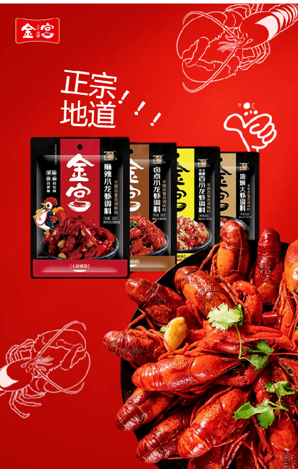 金宫麻辣小龙虾调料应运而生,它采用了金宫川派公司川菜研发团队收集川、渝江河上渔翁煮虾的方法,精选郫县豆瓣、辣椒、花椒、香辛料等精心煸炒爆香而成,色泽红亮,麻辣够味,口感鲜美,给人留下了深刻的印象。
