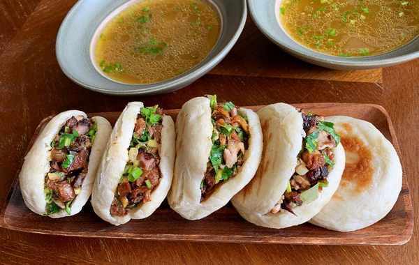 肉夹馍外表晶莹洁白,内里红润油亮;咬一口,面皮松软绵密,臊子浓郁多汁;再配上辣椒油增加层次感。这种简单而精致的组合让人欲罢不能。