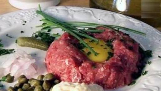 鞑靼牛排,纯生牛肉沫,口味诡异的各种香料,再加上一个生鸡蛋构成了它的异域风情。