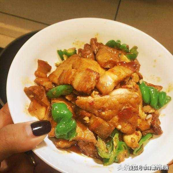 2、锅里油烧热,回锅肉下锅稍稍煎一下,然后下姜蒜、辣椒、一点豆瓣酱,翻炒。
