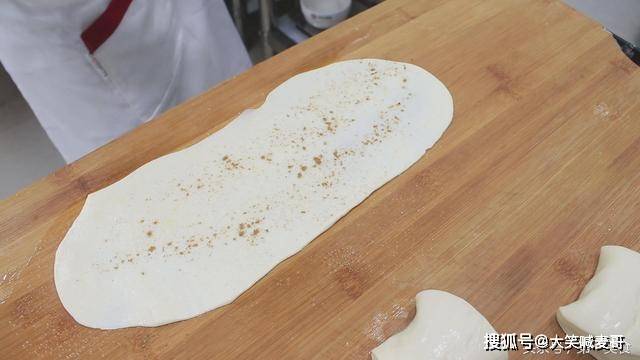 然后在面皮上面刷一层油,再均匀地撒上一些食盐和十三香,