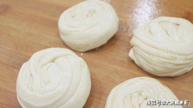 先搅成面絮,再揉成面团,盘丝饼用的不是发面,不用等待发酵。