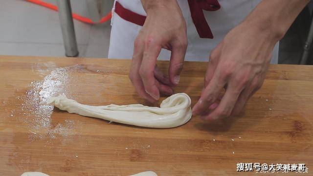 然后用手把长条卷在一起,捏起两边慢慢抻长一些,不要拉断。