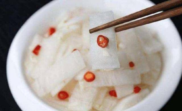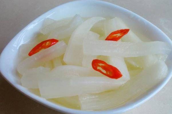 腌制的腌萝卜酸、脆、爽口,吃起来特别鲜美。腌制过程不用加水,酸汤一定要没过白萝卜。让腌萝卜更脆的秘诀是冷藏它们。第二天拿出来的时候,真的酸酸爽口,一口就停不下来。