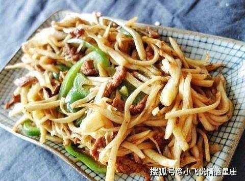 第八步,放入提前炸好的猪里脊肉,再炒三片和竹笋,出锅装盘。美味又营养的三撕茭白就做好了。