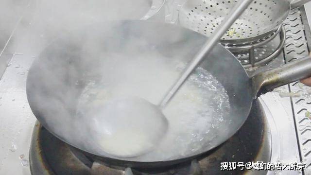 水开后,打去上面的浮沫。焯水1分钟捞出,用凉水冲洗(凉水冲洗,固形筋道)。