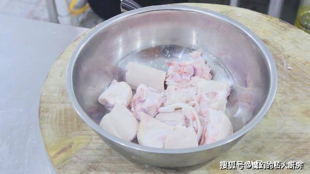 首先猪蹄一只,斩成小块(家庭制作,可以让卖家给你斩好带回来)。