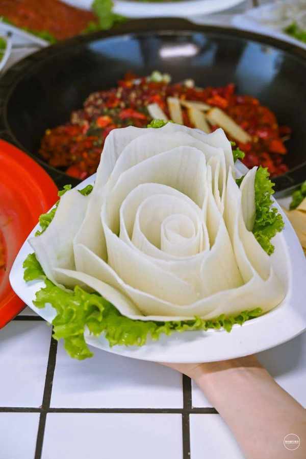 涮在红油锅里,看着就很诱人,也是第一次在银川吃到这样的土豆片!