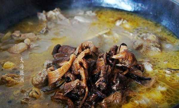做法:野生榛蘑和元蘑需要清洗后提前用冷水泡发,大约要泡发4小时以上,再反复清洗干净。注意浸泡蘑菇的水不要扔掉,待澄清后用来炖小鸡,榛蘑的味道特别浓郁。