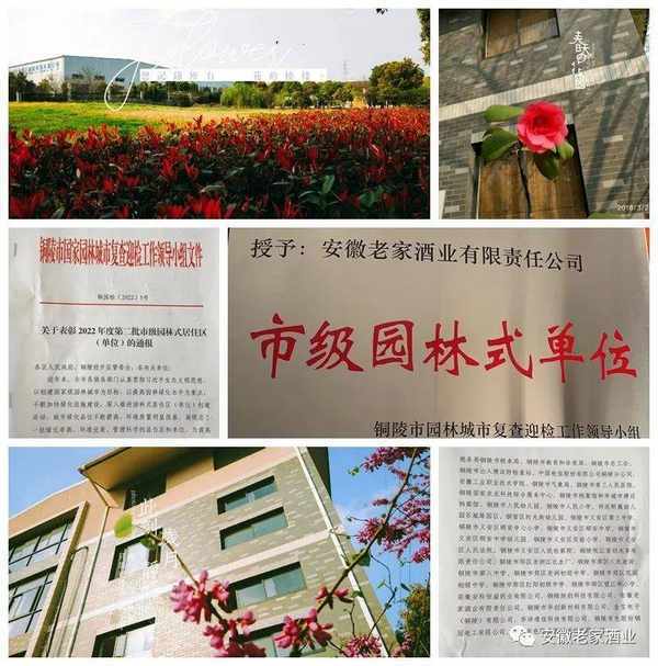 按照《安徽省园林式单位、居住区(小区)、街道评选办法和标准》,经过申报、现场验收和综合评定,安徽老家酒业被评为“2022年度铜陵市市级园林单位”。
