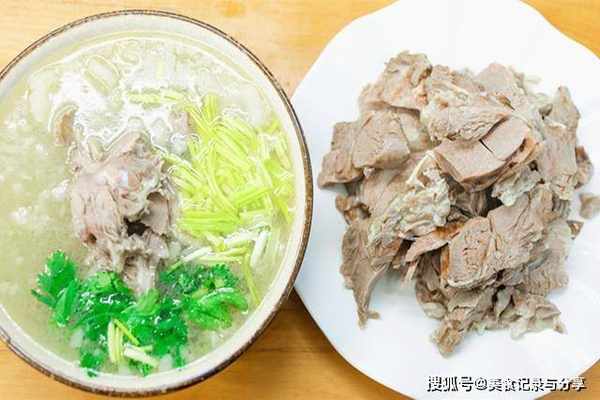 ,这也是为啥等汤吊白以后再放羊肉,其实为了就是让肉和汤的精华相互融合,这样汤也鲜、肉也香。出锅的羊肉趁热切块、切片都中,反正最好是切大点,吃着又香又莊嘴。