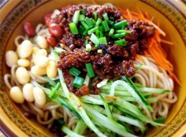 老北京炸酱面由菜码和炸酱拌面条组成,而这道面食制作的美味与否,功夫都体现在炸酱里,火候均匀,肥瘦肉丁兼有,炸酱配比比例也是有考究的,这样做出的炸酱面色泽鲜艳,让人垂涎三尺。