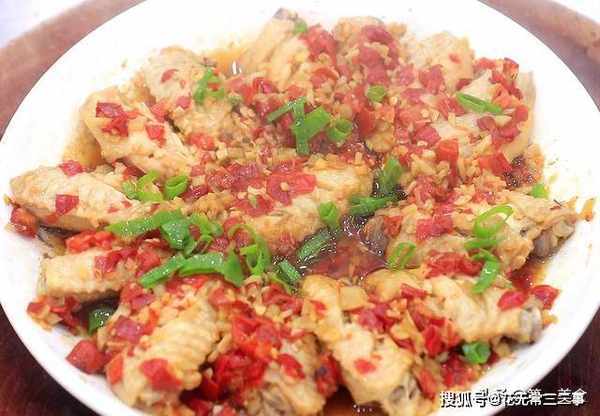 时间差不多时,把蒸好的鸡翅取出来,趁热撒上葱花,美味即成,一道鲜嫩多汁的剁椒鸡翅就做好了。