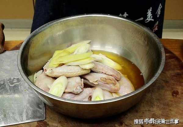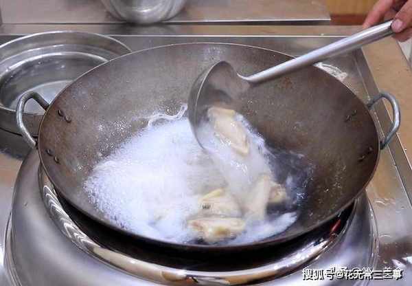 2.锅内烧水,凉水放入鸡翅,凉水下锅能更好地除去鸡翅中的血水和杂质,水开以后打去锅中的浮沫,大约焯水