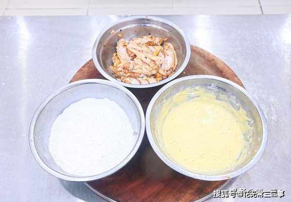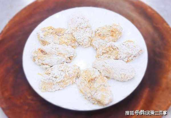 3.锅内烧油,油温5成热时,把挂好的糊的鸡翅依次放入锅中,