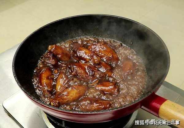 10分钟以后,鸡翅已经吸收汤汁变得非常红润,再稍微收一下汤汁就能装盘上桌了,一道咸香可口的酱油鸡翅就做好了。