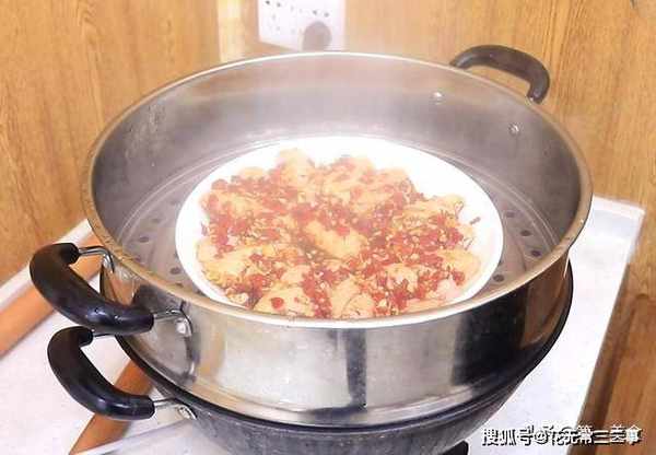 2.30分钟以后把腌好的鸡翅依次摆放在盘中,均匀淋上剩余的料汁,放入上大气的蒸锅里面,