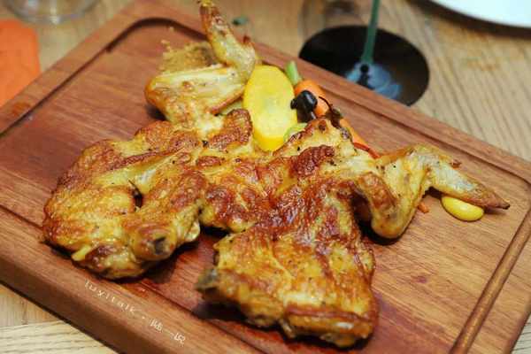 果木烤淡腌: 3小时淡腌,荔枝木苹果木为燃料,700°C古法炙烤,瞬间锁水果木清香,外焦里嫩,深受饕客们喜欢。