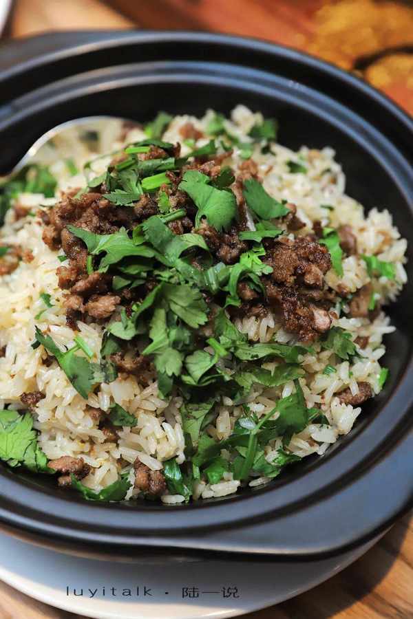 硕大肥厚的法国AAA鹅肝,细腻香嫩的果木烤去骨三黄鸡,还有帝王鲑刺身,鲜果蔬菜沙拉,黑松露宽面,芦笋野菌汤、法式野菌汤、核桃金瓜汤三款汤品以及最后出场,我在10分饱腹的情况下依然能吃小两碗的食神羊肉炒饭,都没有给今晚的牛排主角拖后腿。