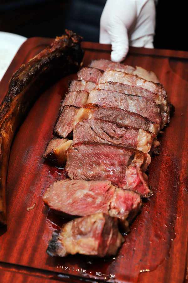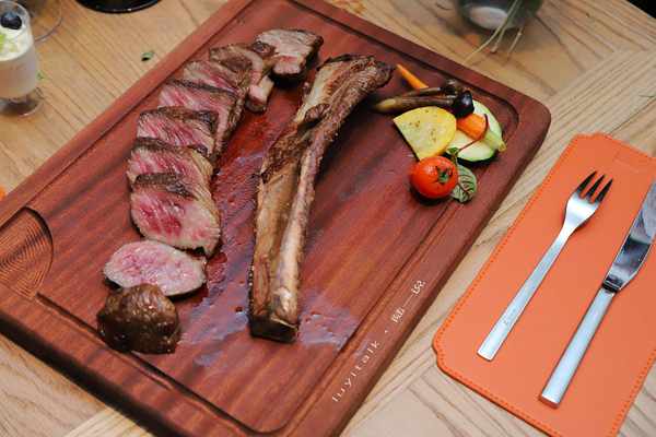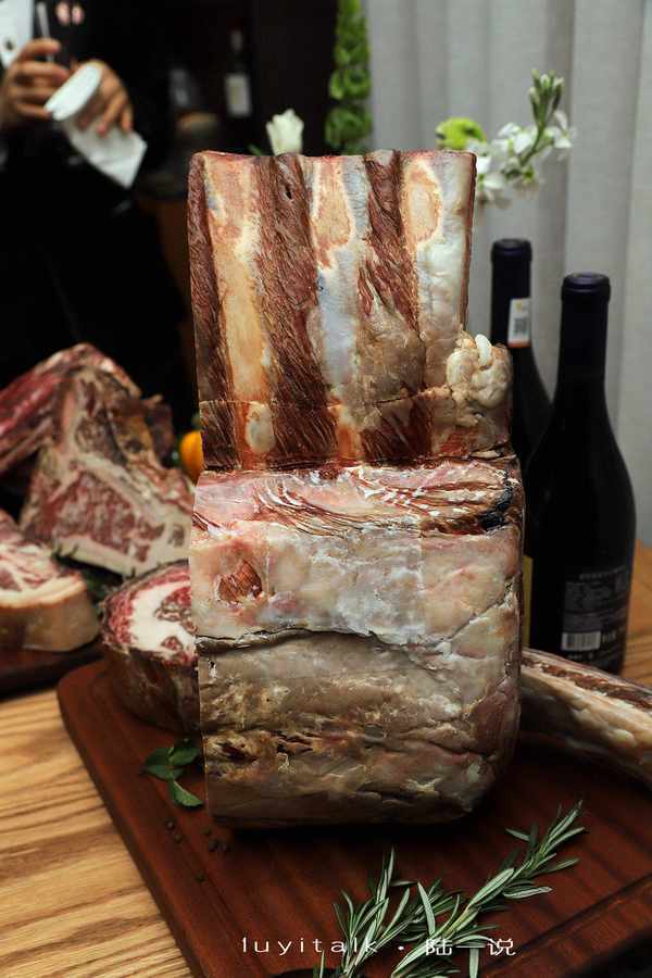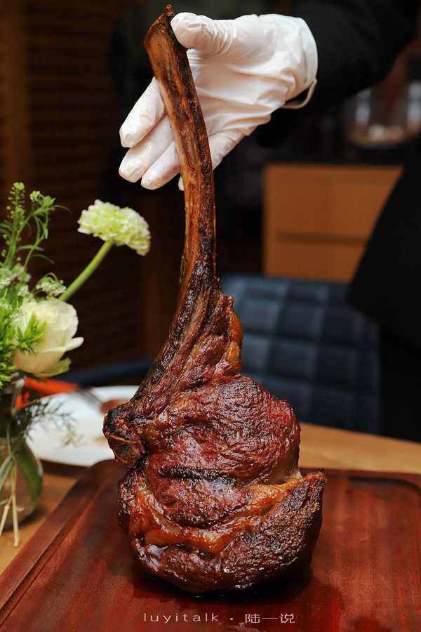 干式熟成40天极佳级魔王骨:依然选用的是极佳级牛小排,带骨上桌,很是霸气。市面大部分都是去骨的,这款就显得更加金贵些。肉香浓郁,入口咀嚼感较强,肥瘦平衡恰当,风味最佳。