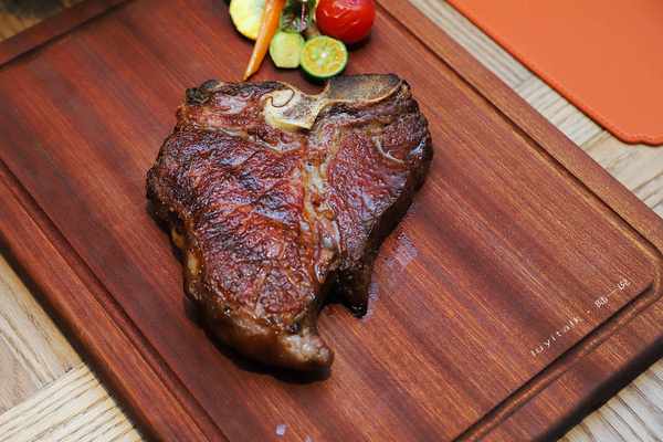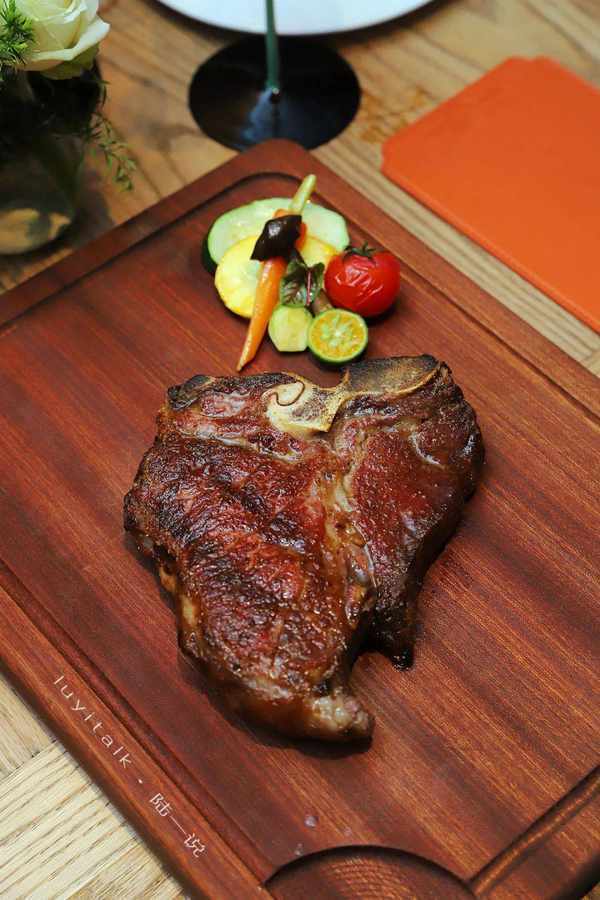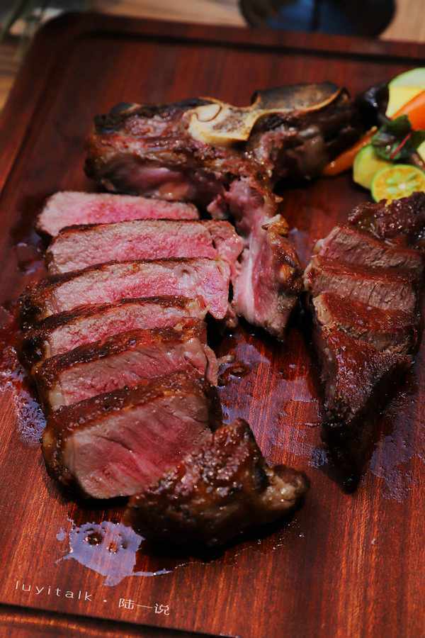 干式熟成60天极佳级T骨:外表的焦香度要更重一些,瘦肉的比例会大一些,越嚼越香。
