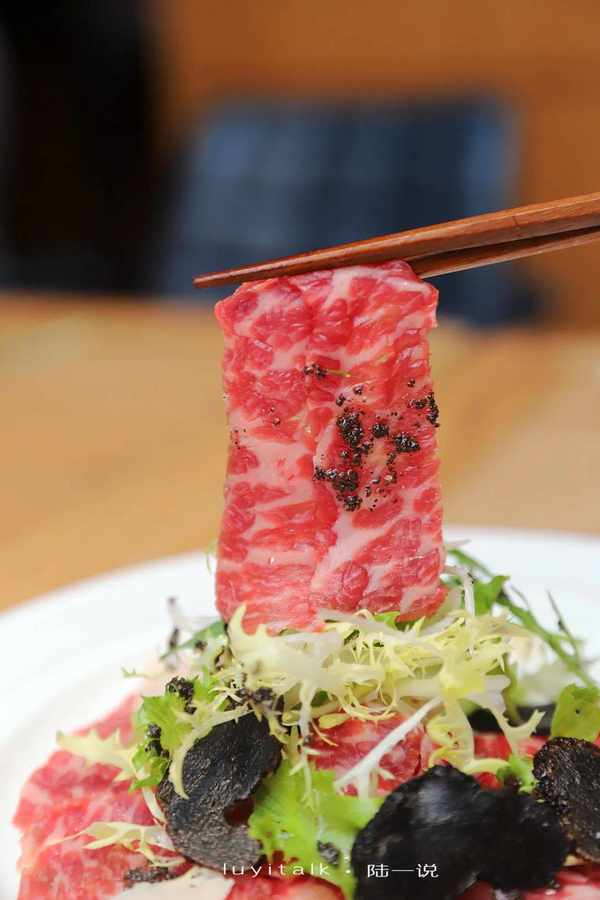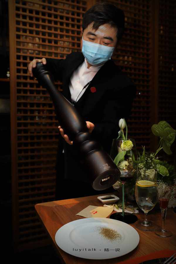 黑松露极佳牛小排刺身,牛肉刺身包裹整片的黑松露入口,那种混合的香气,回味无穷。