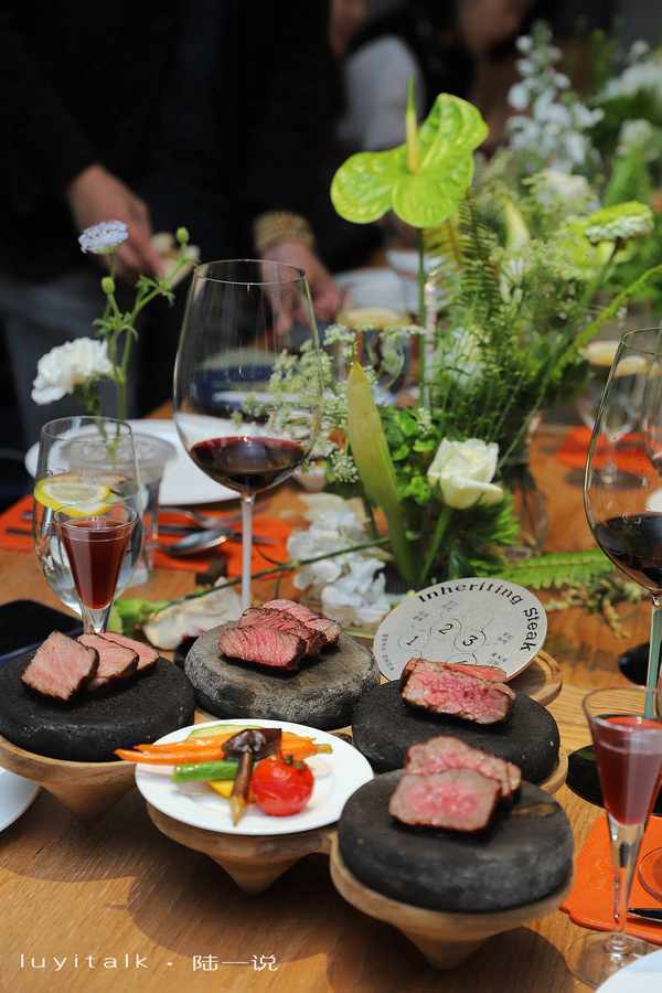 干式熟成50天极佳级M6-7战斧:多人享用,氛围感十足。油脂感没有40天熟成的强烈,鲜嫩多汁,多吃两块也不觉得腻。