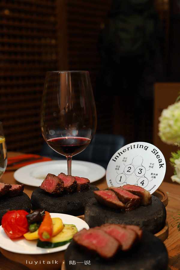 极佳级牛小排,一款牛排,四种风味。这是传位牛扒当之无愧的拳头产品。出品盘器显然是经过了一番精心设计,从左到右分别是“低温慢煮、湿式熟成、干式熟成、果木烤淡腌”四种风味,口感由淡到浓,总有一款是你喜欢的。