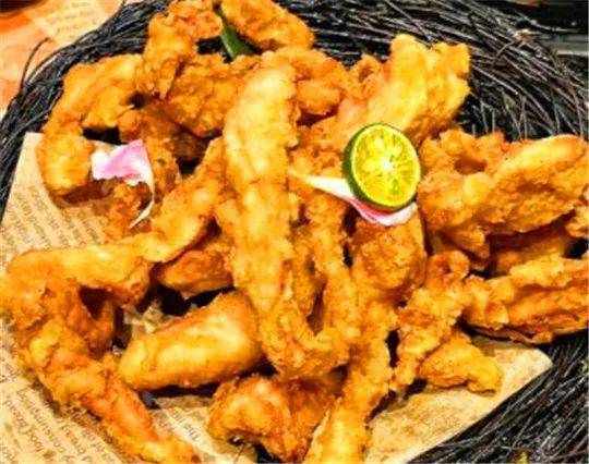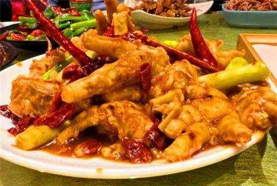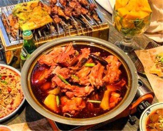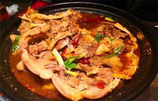 虾酱炸鸡,蘸上香辣酱,既能当零食又下酒。还可以吃特色羊拐筋,除了羊肉,羊拐筋,还有大块的萝卜。