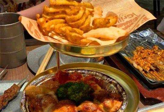 集酒吧、西餐、休闲、户外的全新烧烤。店内下沉式空间做成森林木屋,星空屋顶+仿真火炉,环境太哇塞。酒水区有酒吧的既视感。菜品也多,摆盘也精致。