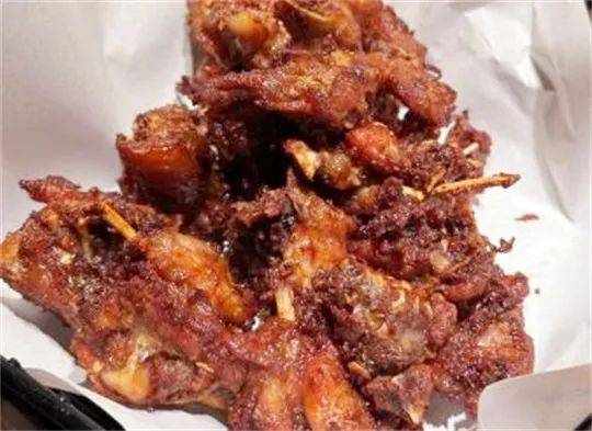 沈阳鸡架,鸡架切成小块热油现炸,表面干酥才能出锅。一口一个嘎嘣脆,连骨头都能嚼着吃!