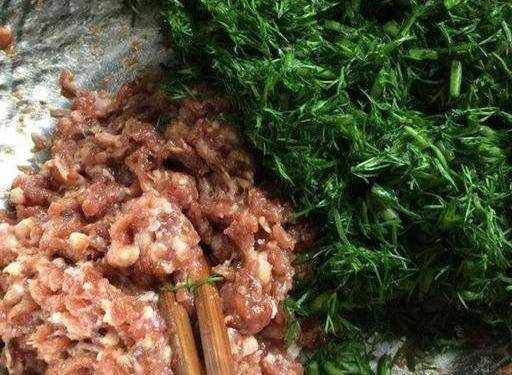 第三步:包饺子的时候,将肉馅倒入切碎的茴香中,继续倒入适量的食用油、香油和盐,搅拌均匀即成饺子馅。