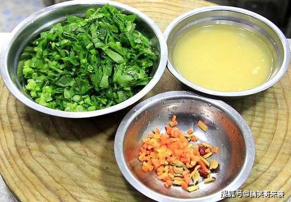 1.准备一把小米,放入清水中抓洗干净,浸泡10分钟,把小米泡开更容易煮熟。切点红枣粒、胡萝卜丁;再准备一小把鲜嫩的芥兰,切成碎末。没有芥兰的也可以根据自己的口味,换成其他时令蔬菜,口感不受影响。