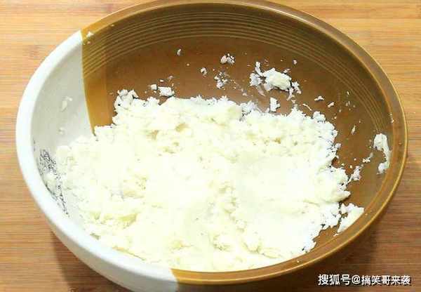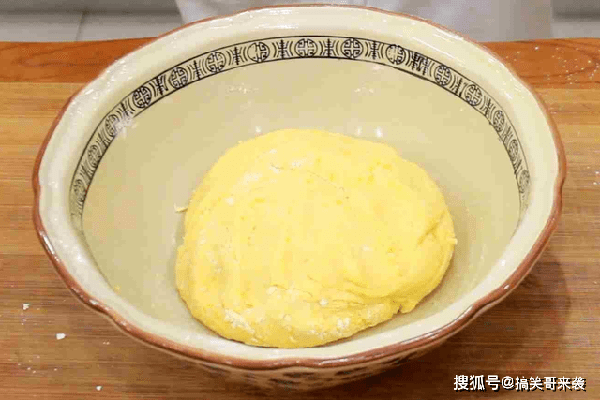 3.在晾凉的红薯泥中,加入糯米粉100克,面粉30克,面粉和淀粉主要用来增加红薯泥的抱合力,不需要太多,以免影响红薯香甜的口感,把它们搅拌在一起,下手揉成松软的面团备用。