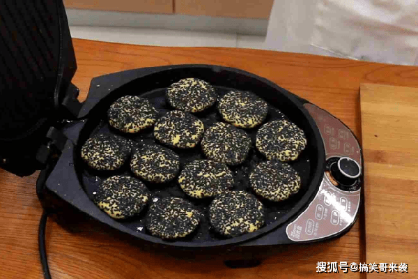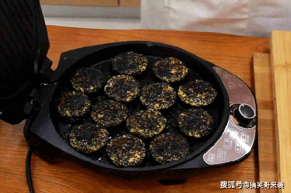 5.全部做好以后开始烙制,电饼铛预热3分钟,均匀刷上植物油,把做好的生坯放入锅中,盖上锅盖烙2分钟。