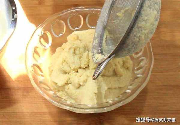1.准备黄豆100克,在清水中洗净,放入豆浆机中,加入适量清水,用干豆模式打成豆渣。把豆渣倒入滤勺中,控出豆浆,用勺子摁压豆渣充分滤出豆浆,只用豆渣。