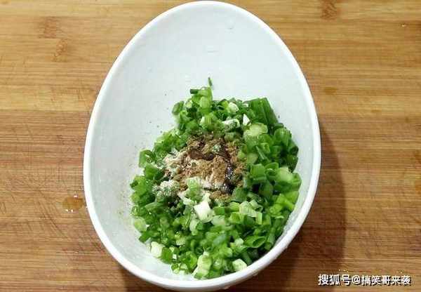 3.准备小葱几根,切圈放入盆中,加入鸡粉2克、十三香2克、香油3克拌匀备用。