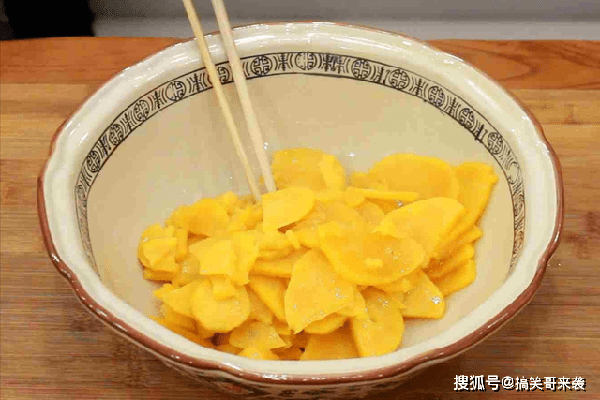 1.准备削净外皮的红薯一个,从中间破开,切成均匀薄片,放入蒸笼里面,水烧开以后上笼,蒸制10分钟。10分钟以后,红薯已经蒸好,非常软糯清香,用筷子轻轻一碰就碎。