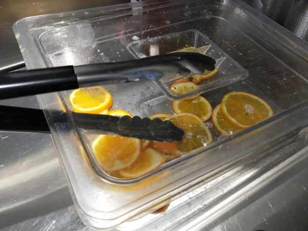 2022年12月1日,蜜雪冰城百家湖1912店店员切好鲜橙片,棒打鲜橙需要使用80克鲜橙,老板却只让放60克。新京报调查暗访组 摄