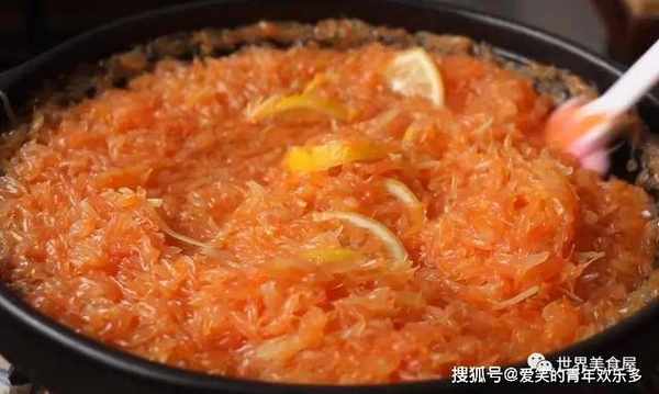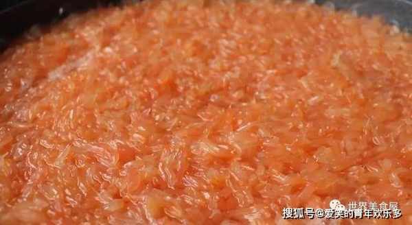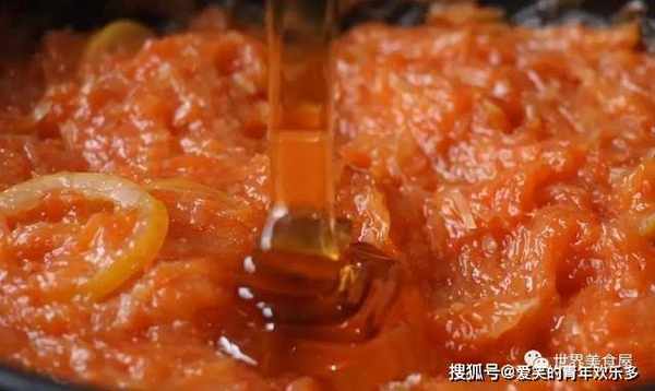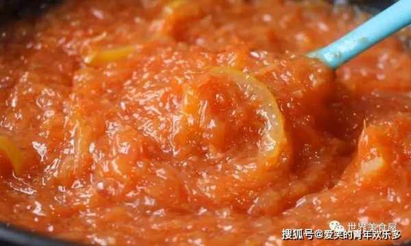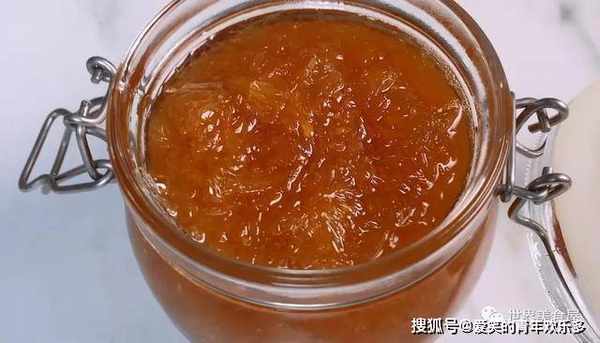 17、这道柚子酱,酸酸甜甜的,有柠檬的香味,也有蜂蜜的香味,满满的水果香气,很浓郁。做好的柚子酱,大家记得放在罐子中,放进冰箱存放,可以吃好长时间。