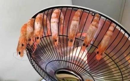 电暖扇,我们是用来取暖的,有时候还会用来烘干尿布,这哥们就绝了,竟然用小太阳烤虾吃,用电用生命在吃虾,是对虾有多深的感情,真是的惊呆了,不过这种方法千万别模仿,真是有点危险看起来。请勿模仿,想吃虾,小编给你方法。