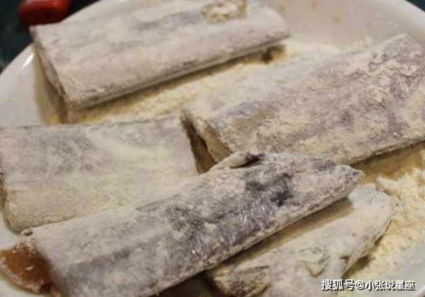 第五步:锅中再倒入少许食用油,烧热,将裹好面粉的毛尾放入,中小火慢慢煎至毛尾呈金黄色,控油后取出食用。