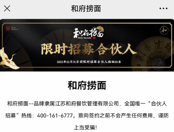 这个数据证实:2022年和府捞面在全国招募合伙人计划失败。