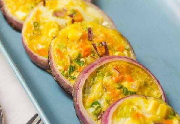第五步:最后将洋葱煎蛋卷烤至两面金黄,取出即可食用。