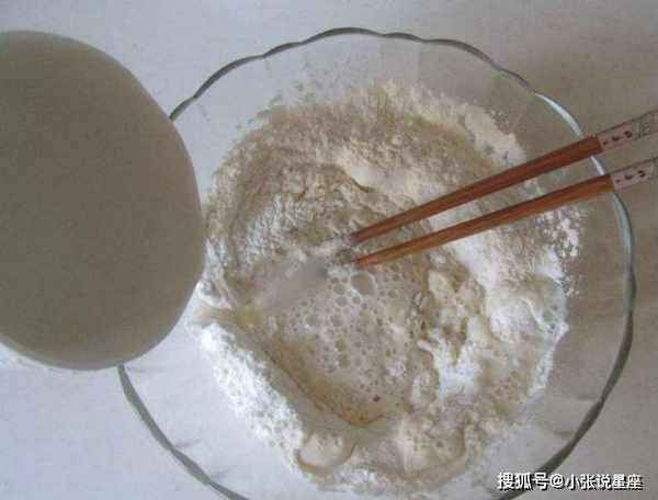 1.加入200克面粉和320克冷水,顺着一个方向搅拌成浓稠状,盖上保鲜膜静置30分钟。