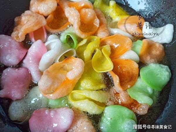 3、油尽量多一些,虾片炸的也均匀,随着油温的升高,虾片会迅速膨胀,等到完全变大,即可关火控油,炸虾片的过程非常简单,总结一下炸法:少量多次,勤翻动。