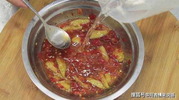 红剁椒10克, 小米泡椒10克,白醋5克, 辣鲜露3克, 白糖3克