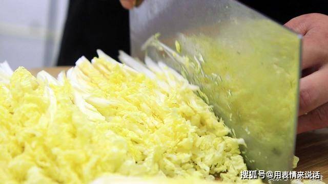 清洗干净的娃娃菜, 切去娃娃菜的根部,先一分为二, 再把娃娃菜切成细丝。