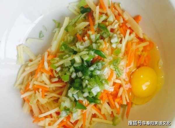配料:土豆、胡萝卜、鸡蛋、面粉、洋葱、胡椒粉、五香粉、盐、油。练习步骤: