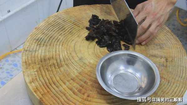 锅内烧水,水烧开后,倒入腐竹,焯水大约几秒钟,再放入黄瓜和木耳,